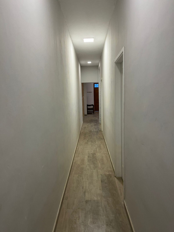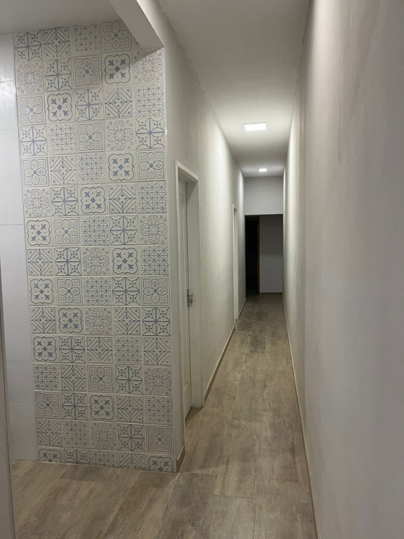 Possui sala ampla para dois ambientes, cozinha com pia de granito, 3 dormitórios (sendo 1 suíte), banheiro social, lavanderia externa, quintal nos fundos e corredor lateral.