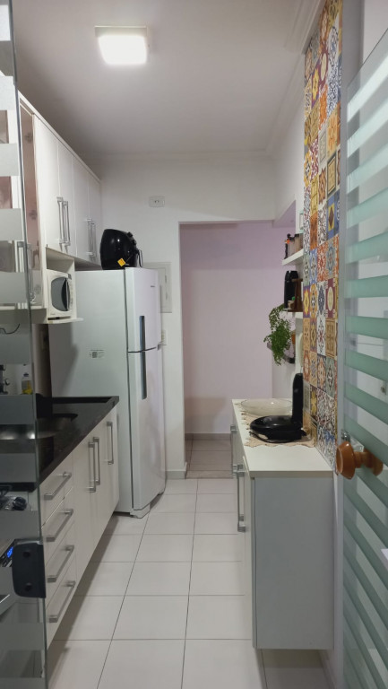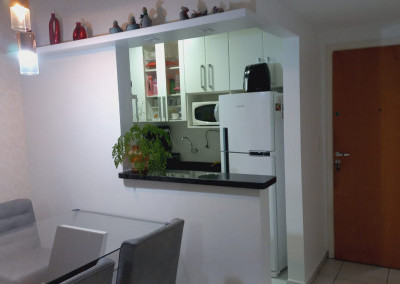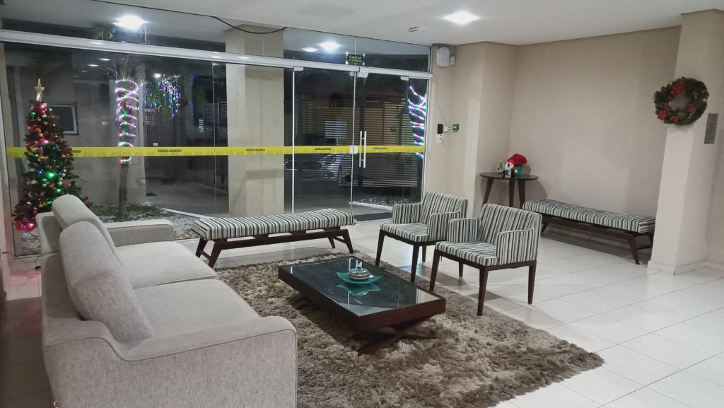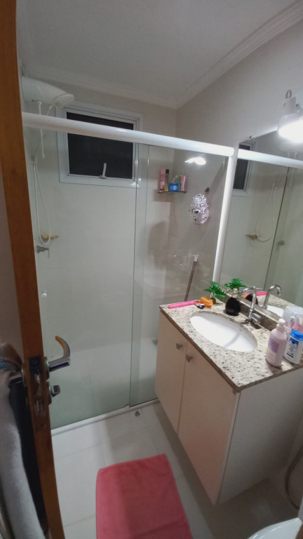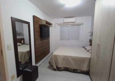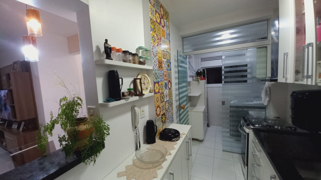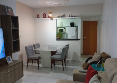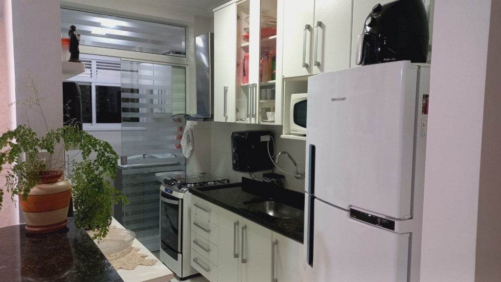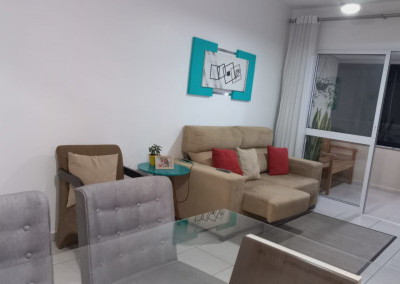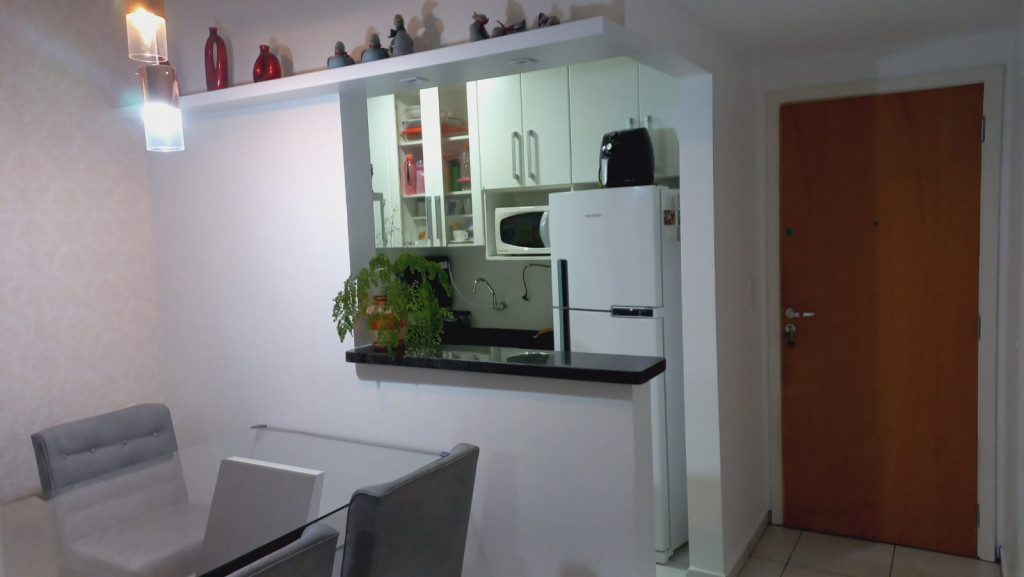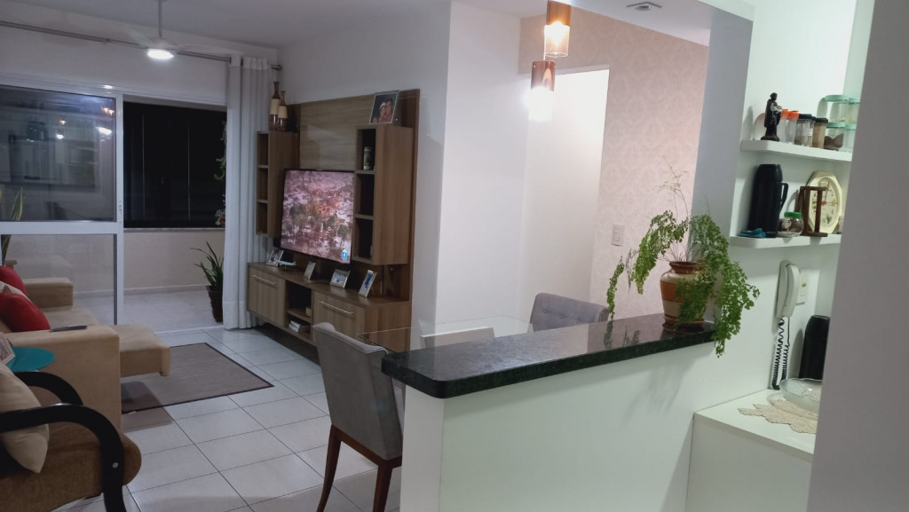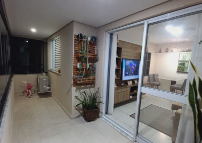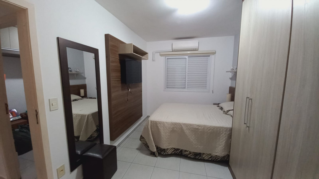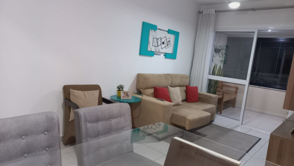 Apartamento com 2 quartos sendo uma suíte, 1 vaga de garagem coberta, sacada ampla com cortina de vidro, ar condicionado em 1 dos quartos.